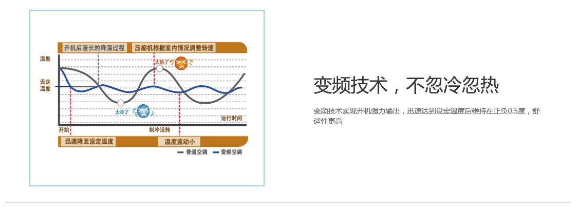真芯實(shí)藝,力爭(zhēng)節(jié)能,室外機(jī)靜音運(yùn)行,安靜室內(nèi)環(huán)境,變頻技術(shù),不忽冷忽熱,除濕再熱,隨身感溫,安裝便利