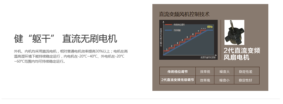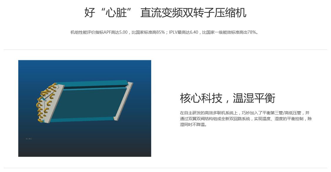 核心科技,溫濕平衡;好“心臟” 直流變頻雙轉(zhuǎn)子壓縮機;健“軀干” 直流無刷電機;強“身板” 先進U型換熱器;強“大腦” 定制變頻控制芯片;智能化體驗;可搭配多種內(nèi)機